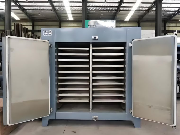 Oven pengering beroperasi dengan sebagian besar udara panas disirkulasi ulang, menghasilkan efisiensi panas yang tinggi dan penghematan energi. Sistem ventilasi paksa dengan pelat distribusi udara yang dapat disesuaikan memastikan pengeringan material yang seragam.