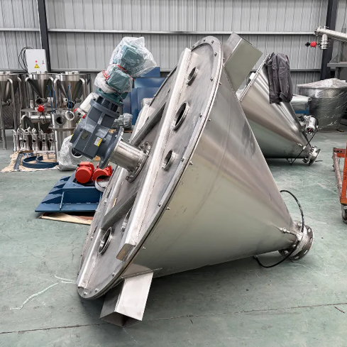 Pengaduk kerucut adalah peralatan pencampuran yang sangat efisien dengan silinder kerucut sebagai struktur intinya, yang banyak digunakan untuk pencampuran seragam bubuk dan bahan granular.Ini memiliki efisiensi pencampuran yang tinggi, daya adaptasi material yang kuat (mampu menangani bahan yang rentan terhadap aglomerasi atau dengan perbedaan kepadatan kecil), residu rendah, struktur kompak, dan pengoperasian yang mudah.Hal ini umumnya diterapkan dalam industri seperti teknik kimia, farmasi, makanan, dan bahan bangunan, dan sangat cocok untuk operasi pencampuran batch kecil dan menengah.